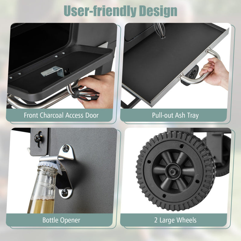 - User-Friendly Design: The front charcoal access door with an anti-scalding handle allows for easy access during cooking, plus a built-in bottle opener for added convenience.